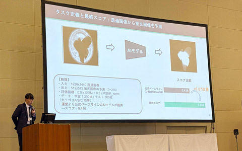 また、第25回日本再生医療学会総会(2026年3月19日~20日、神戸国際会議場・神戸国際展示場)において表彰式が行われ、当社社員がチームを代表して、開発したAIアルゴリズムについて発表を行いました。発表では、再生医療分野におけるデータ解析の課題を踏まえつつ、アルゴリズムの設計や解析手法、その特徴について報告しました。