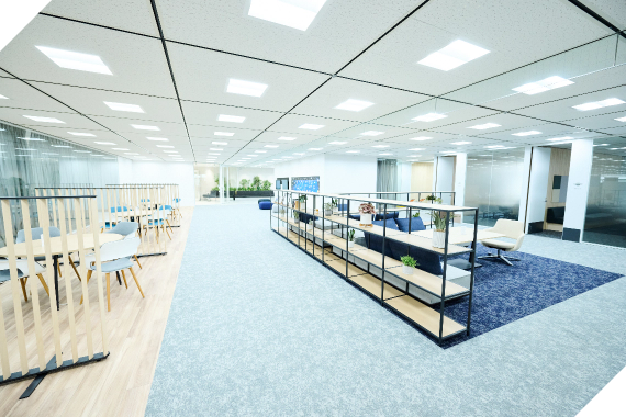 オフィスには、ソリューションのデモンストレーションや最先端技術の実証実験、技術セミナーなどを行う「オープン・イノベーション エリア」と、ペアワークやチームビルディング、プレゼンテーションなど様々な活動を促す「フレキシブル・ワークスタイル エリア」の2つのエリアを設けています。